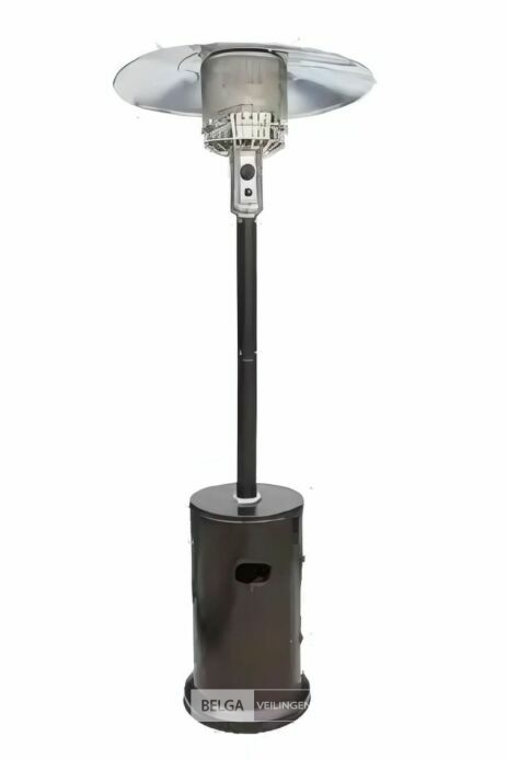 Patio Heater (HSS-A 5SS) Materiaal : Stainless Staal Basis : Ø 460 mm x 85 mm Inhoud tank : Ø 380 x 670 mm, Hoofdpaal : Ø 56 mm x hoogte 960 mm, Brander eenheid : Ø 278 mm x Hoogte 530 mm Vlamscherm : Ø 278 mm x hoogte 210 mm Totaal hoogte : 2200 mm Brandstof: Propaan, Butaangas
