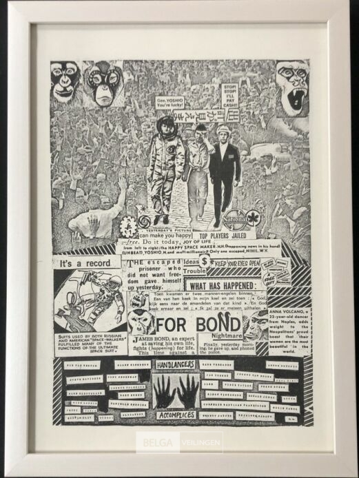 Zeldzame losbladige proefdruk - happening news - in kader 31x23 - galerijprijs 100 euro
