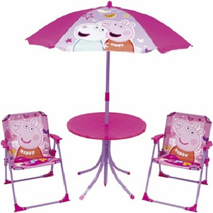 Peppa Pig Camping 4 Camping Set Roze-in en outdoor use -afmeting parasol 110cm-tafel 50x50x48cm -2x stoel 38x32x53cm-leuke speelset of eettafel