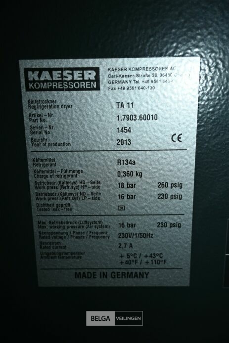 Persluchtkoeldroger/compressor Kaeser , afmetingen ± 630 x 484 x 779 cm , werking onbekend , pallet inbegrepen