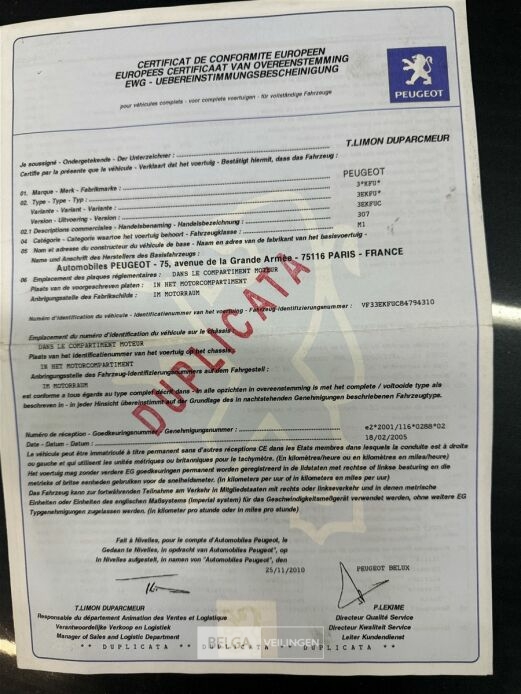 Peugeot 307 - chassisnr VF33EKFUC84794310