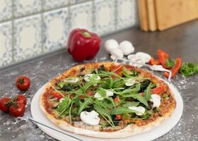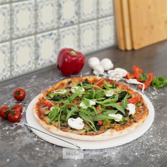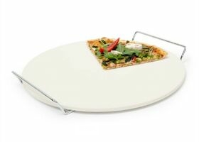 Pizzasteen met metalen houder-bakplaat voor in de oven -retouren van Relaxdays