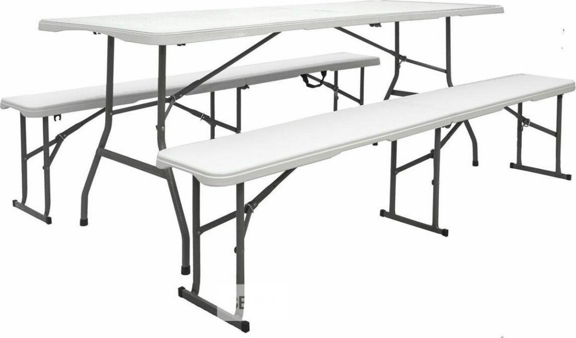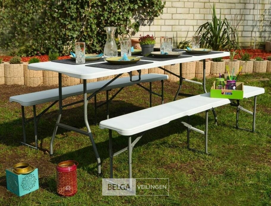plooitafel met zitbank afm tafel ± 180x70x75 en afm zitbank ± 180x28x42