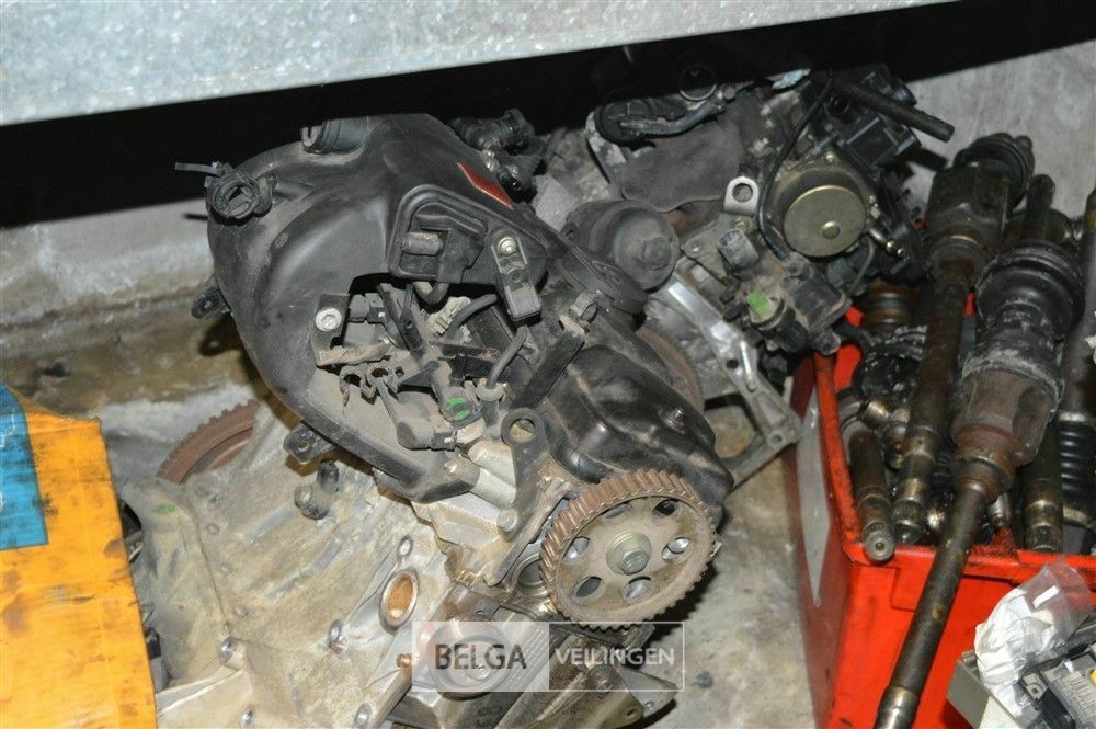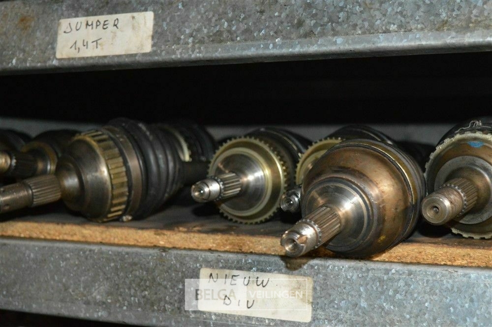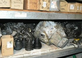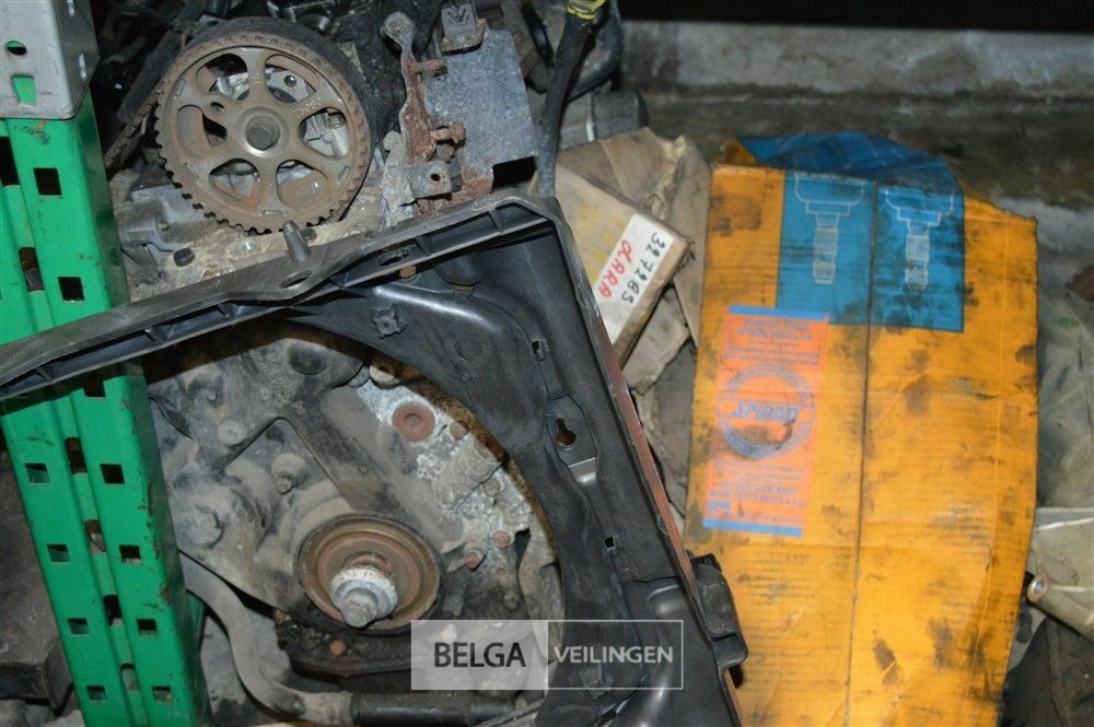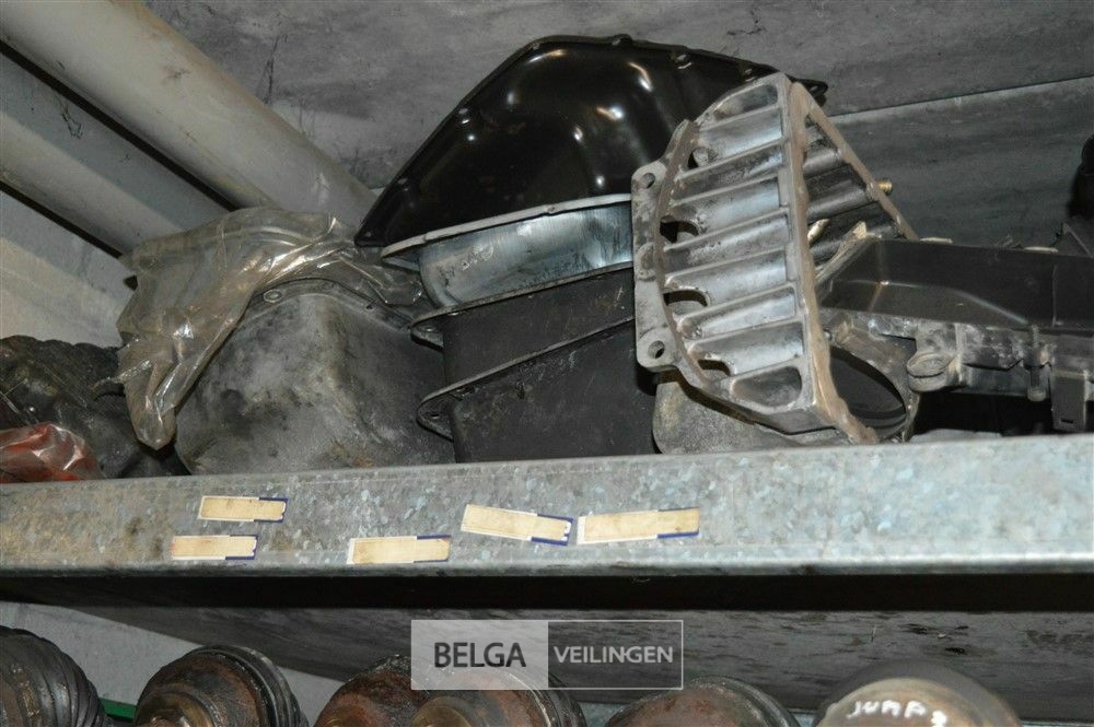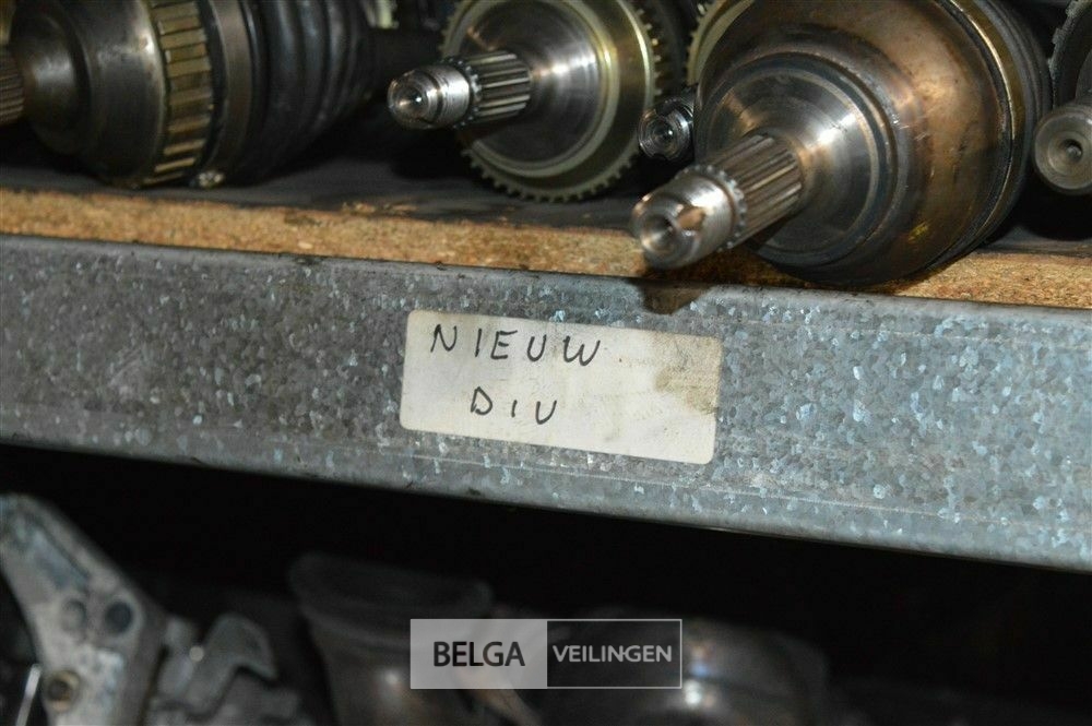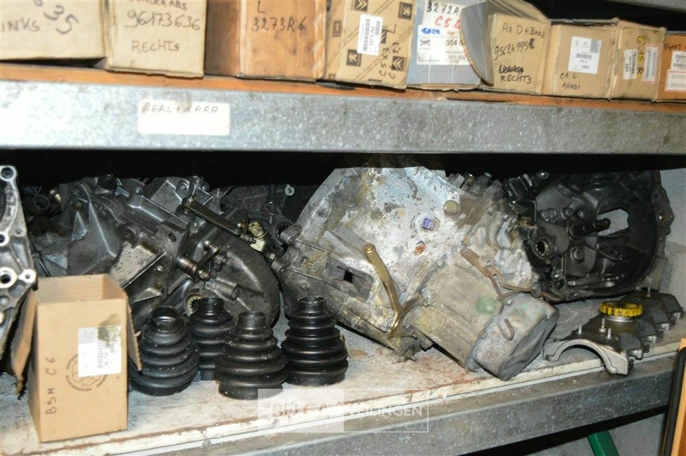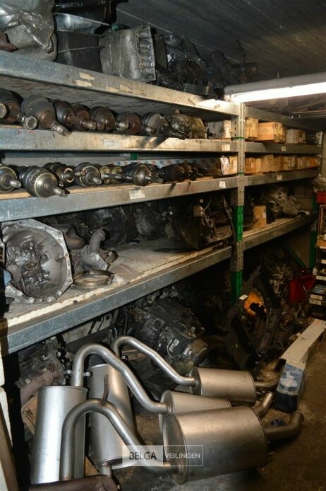 rek met inhoud steekassen, versnellingsbakken, uitlaten, motoren