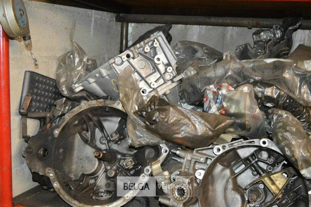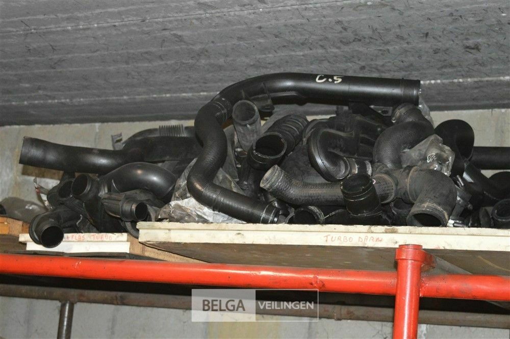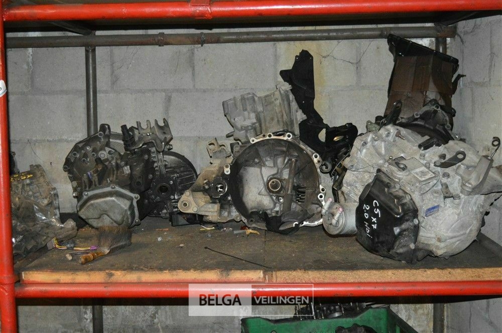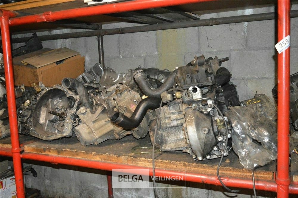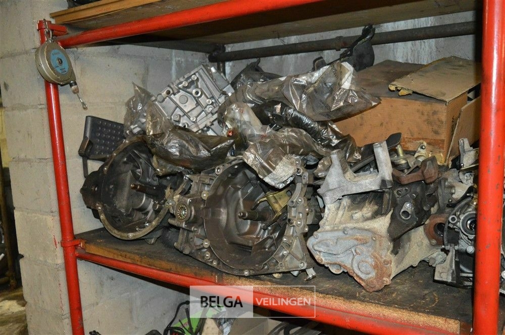 rek met inhoud versnellingsbakken Citroen, turbo slangen en div