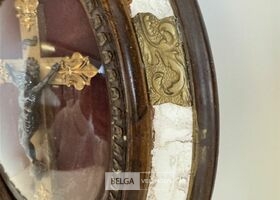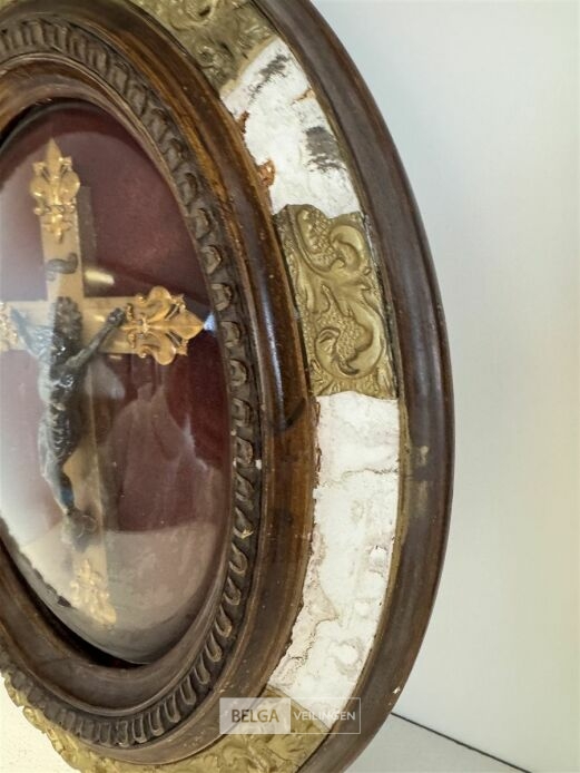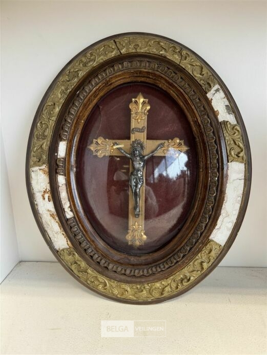 Religieus wandtableau met kruisbeeld – (afm. 38 cm x 35 cm)