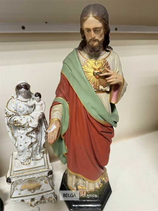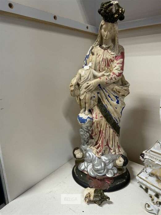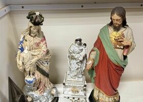 Religieuze beeldjes + wanddeco (licht beschadigd)
