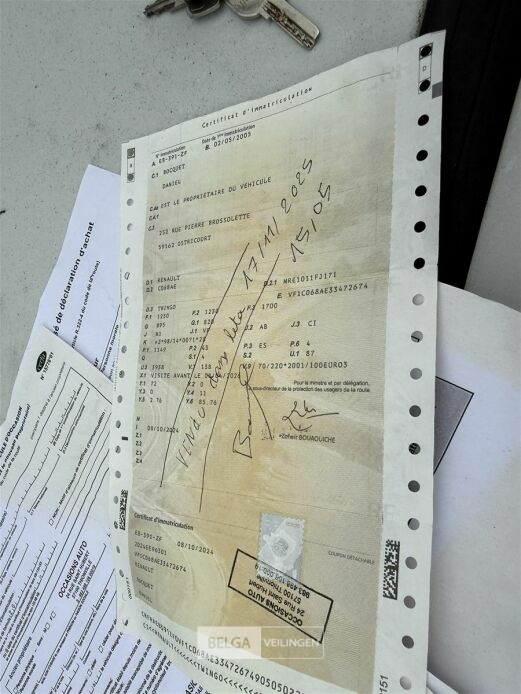 RENAULT TWINGO, chassisnummer VF1C068AE33472674, GEEN sleutel en GEEN papieren