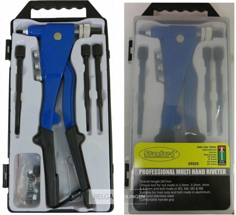 Professionele rivettentang incl 320 popnagels in diverse maten-2 rechte tangen (1 x geschikt voor inwendig en 1 x geschikt voor uitwendig gebruik). Voorzien van geisoleerde grepen
