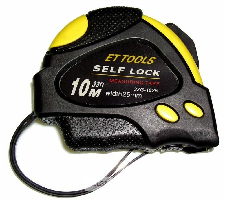 Rolbandmaat, met automatische terugkeer en stop, 10 mtr. x 25 mm, metrisch.