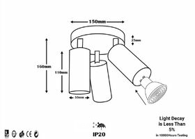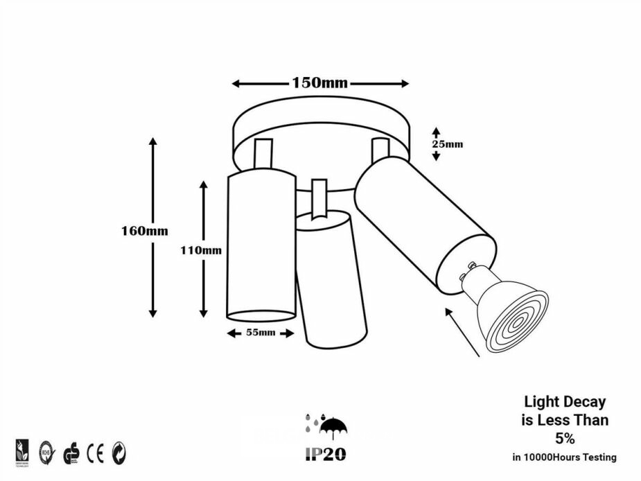 4 x Ronde opbouwarmatuur GU10 – 3 spots orientAbles – Zwart – Fitting: GU10 – Aantal spots: 3 – Afmetingen: Ø 55 x 110 mm – Muurbeugel: Ø 150 x 25 mm – Vorm: rond – Richtbare spots: 350° rotatie en 70° kanteling – Materiaal: hoogwaardig sterk aluminium – Kleur: zwart – TensiOn: 85-265V (50/60Hz) – Beschermingsgraad: IP20 – Speciaal ontworpen voor gebruik binnenshuis – GU10-lampen niet inbegrepen – Inclusief montageset voor eenvoudige installatie – Ideaal voor accent- of functionele verlichting.