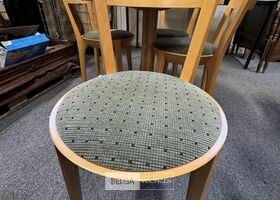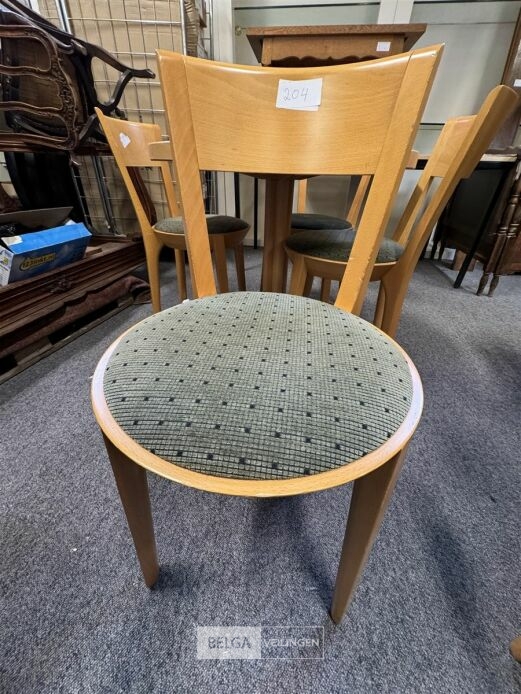 Ronde tafel met 4 stoelen – afmetingen tafel : Ø 80 cm – H 72 cm – zithoogte stoel: ± 46 cm