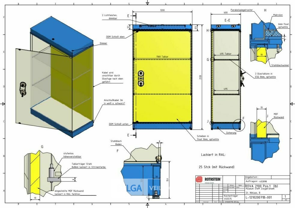 ROTHSTEIN luxe museum vitrinekast met verlichting, 1200x600x2120cm, voor verder info zie bijlage