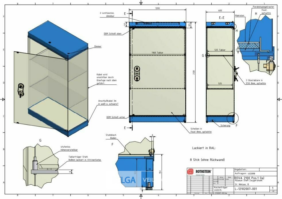 ROTHSTEIN luxe museum vitrinekast met verlichting, 1200x600x2120cm, voor verder info zie bijlage