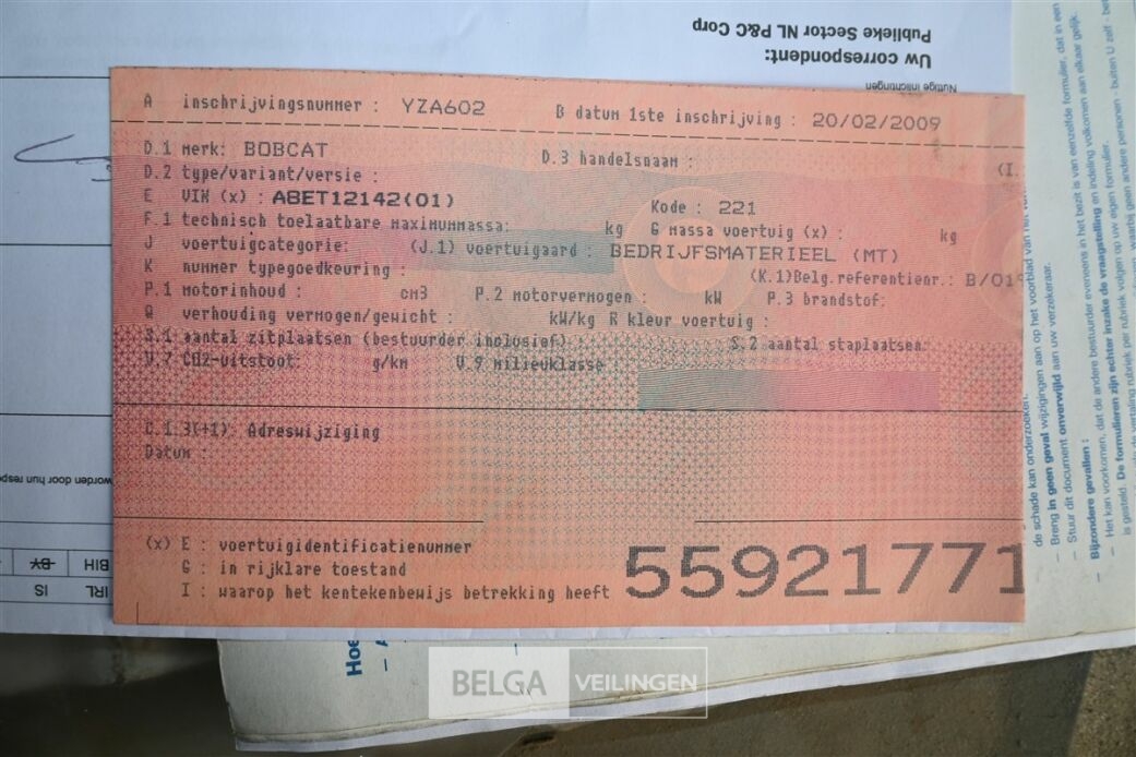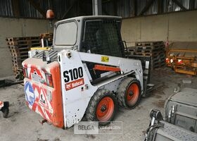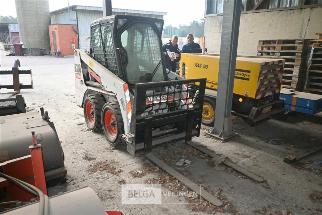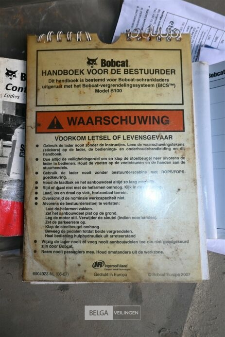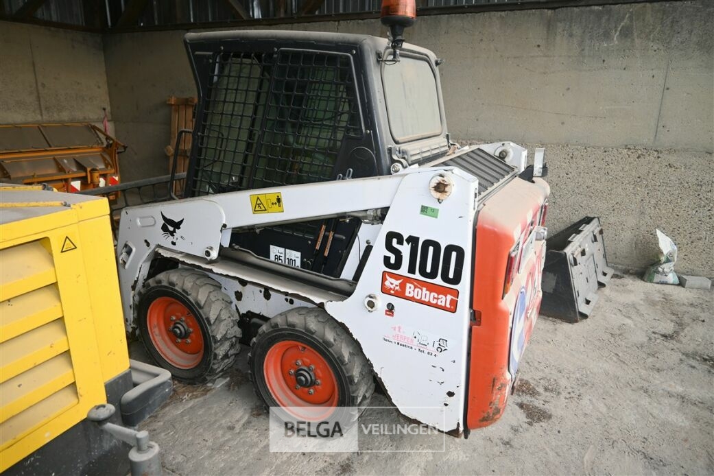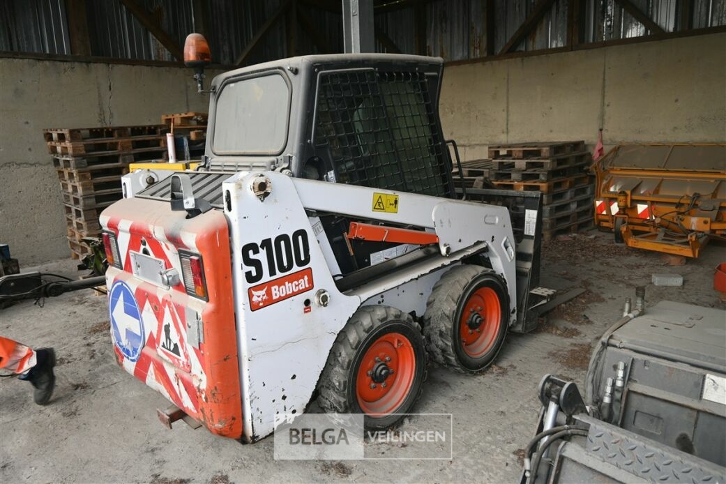 Schranklader Bobcat S100, bouwjaar 2009, Chassisnummer: ABET12142(01), Urenteller: 1323,2, Sleutel en inschrijvingsbewijs aanwezig, met steekvoerk, grondfrees, schepbak. OPGELET: De aangeboden goederen zijn niet onderzocht op gebreken en niet getest op werking. Maak gebruik van het kijkmoment om u te voorzien van de nodige indrukken, Artikelen met een batterij (voertuigen, machines, e.d.) hebben mogelijk een platte batterij.