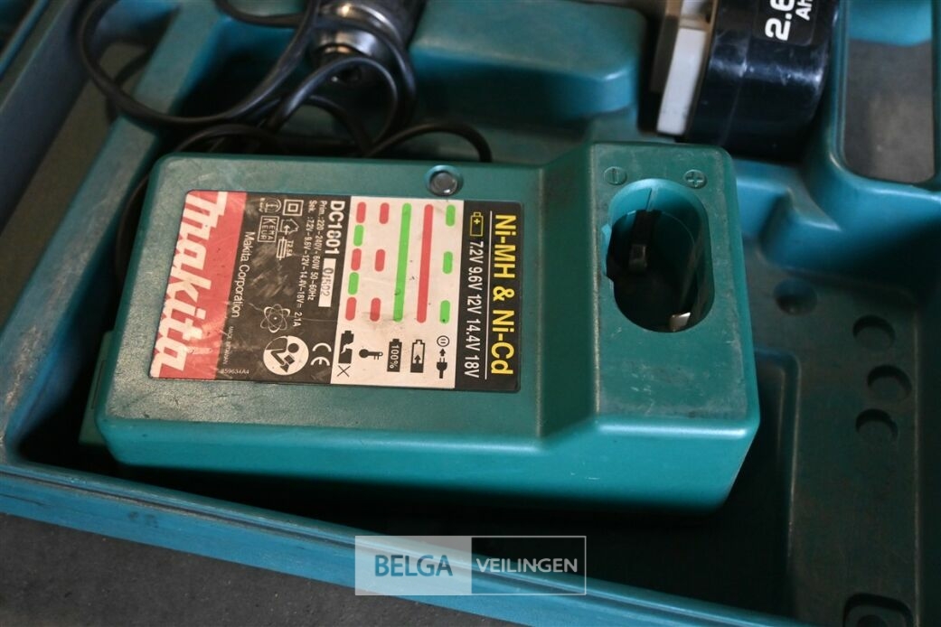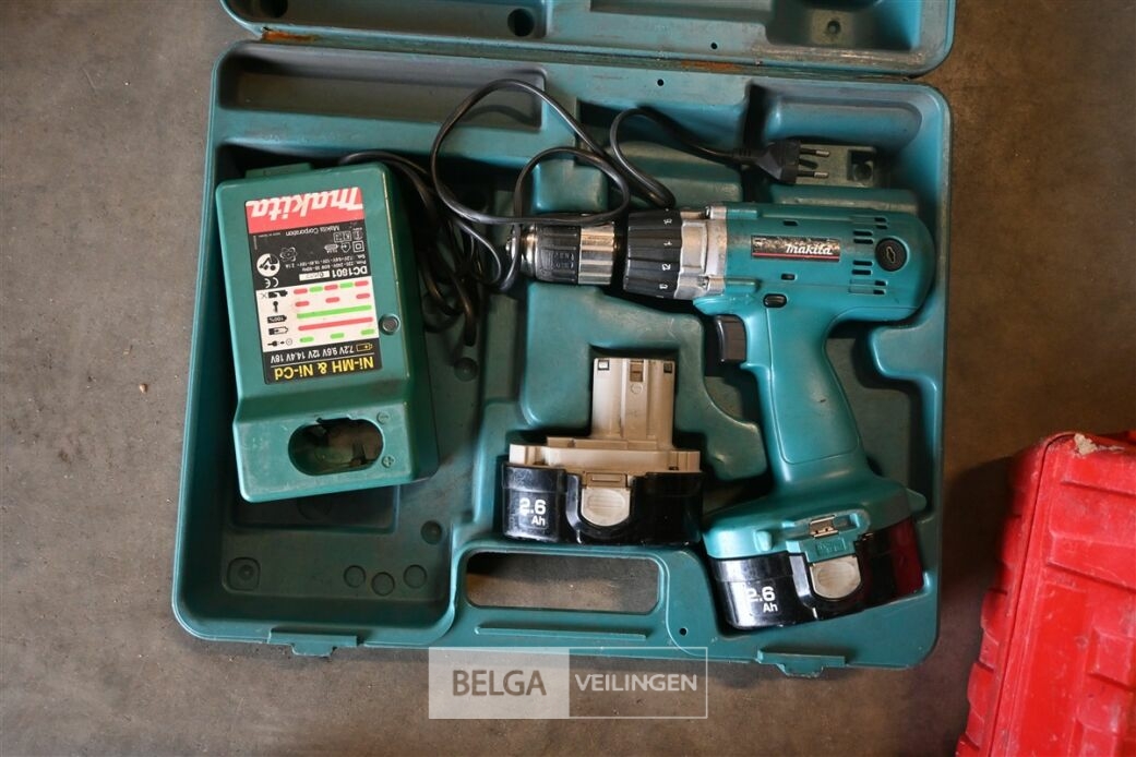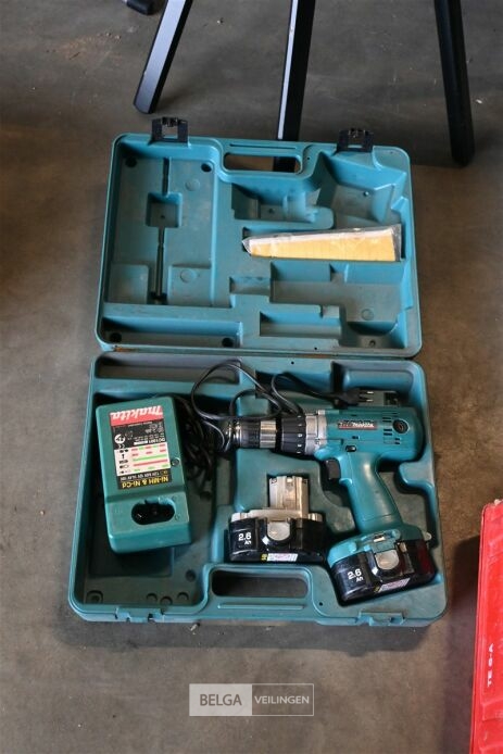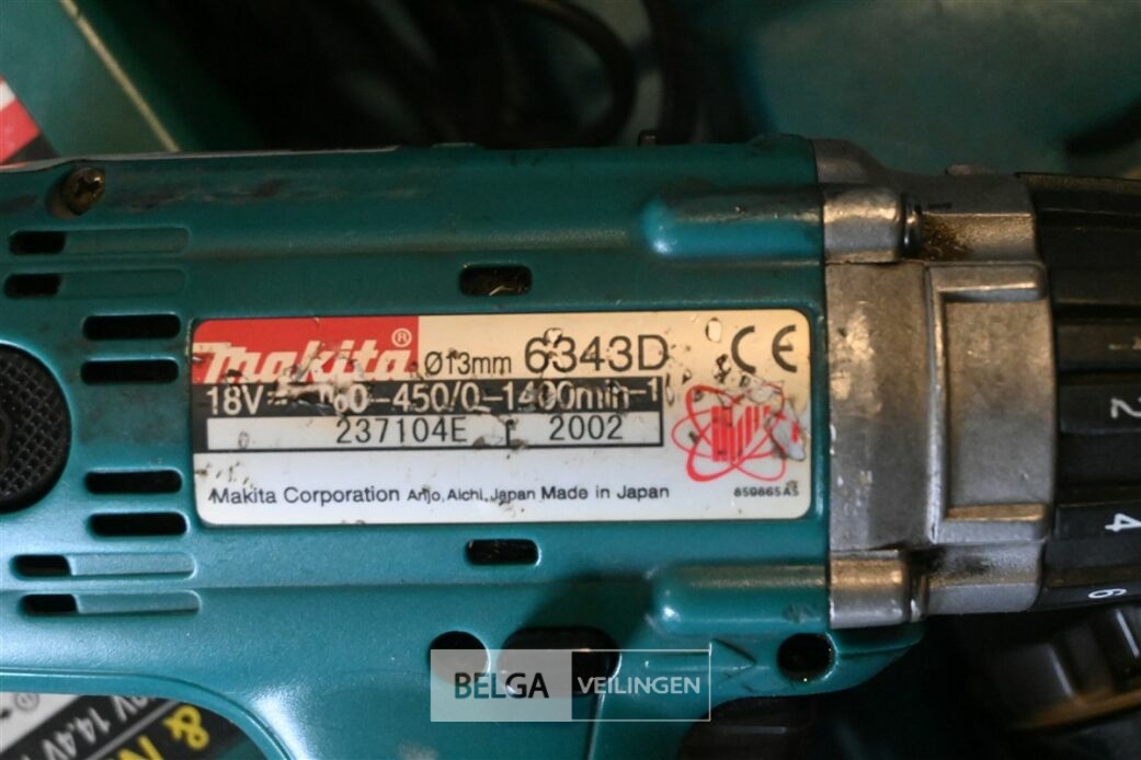 Schroef-boormachine, merk MAKITA, type 6343 D, met 2 batterijen + oplader. Werking niet getest of bekend.