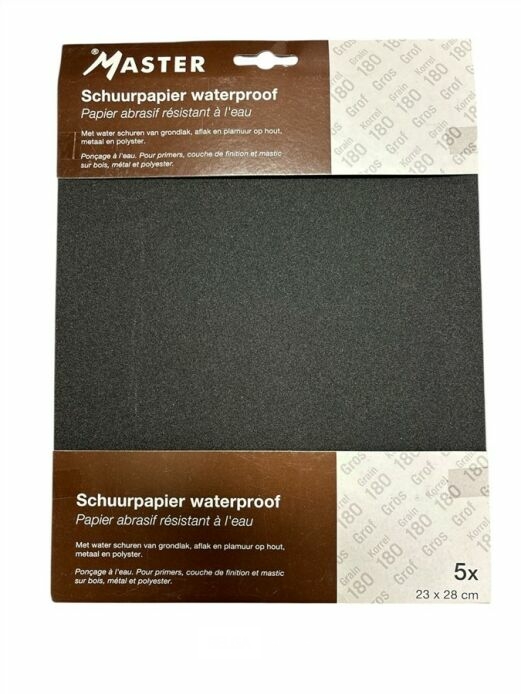 5 pakken Master schuurpapier natschuren korrel 180 -5 vellen per pak - schuurvel 23x28cm