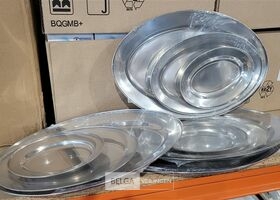 Set van 3x stuks RVS platte ovale serveerschalen voor bijvoorbeeld salades of vlees bij de barbecue. Formaat: 30 cm. Materiaal: RVS. Vaatwasmachinebestendig: Ja, geschikt voor in de vaatwasser.