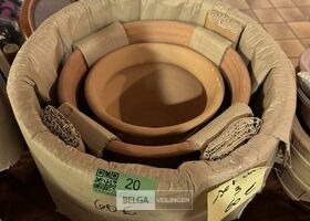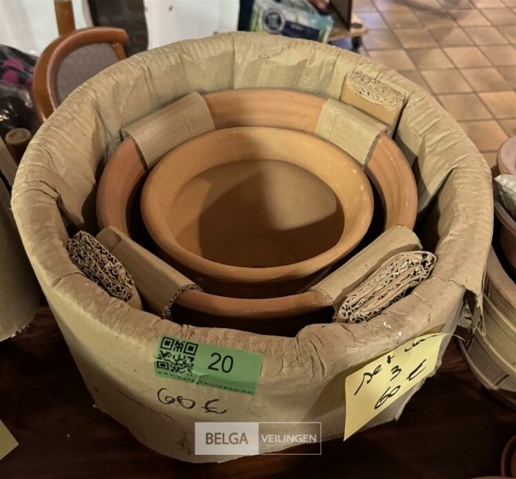 Set van 3 terracotta bloempotten met motief - Ø 22 cm, 29 cm, 40 cm - hoogte 16 cm, 20 cm 26 cm