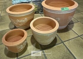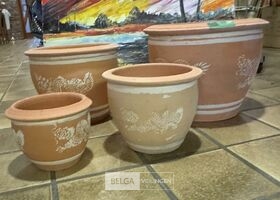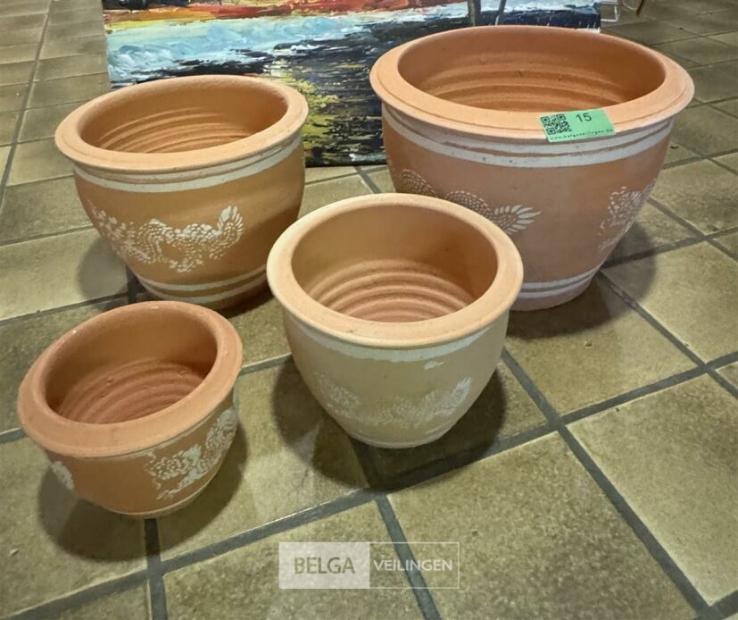 Set van 4 beschilderde terracotta bloempotten - Ø 15 x H 13 cm, Ø 20 x H 19 cm, 25 cm en 33 cm - hoogte 19 cm, 24 cm en 29 cm