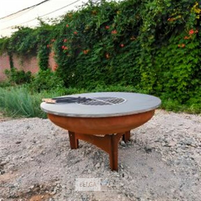 Sfeer BBQ (Cortenstaal, Roestig): Ø bakplaat : 1000 mm - afm Grilplaat : 1000 mm - Hoogte : 500 mm - Gewicht : 108 kg - Incl. beschermhoes!