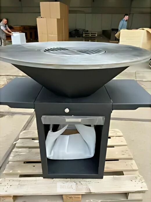 Sfeer BBQ Ø bakplaat : 1000 mm, afm Onderstel : 500 x 500 mm, Hoogte : 1000 mm Incl. beschermhoes !