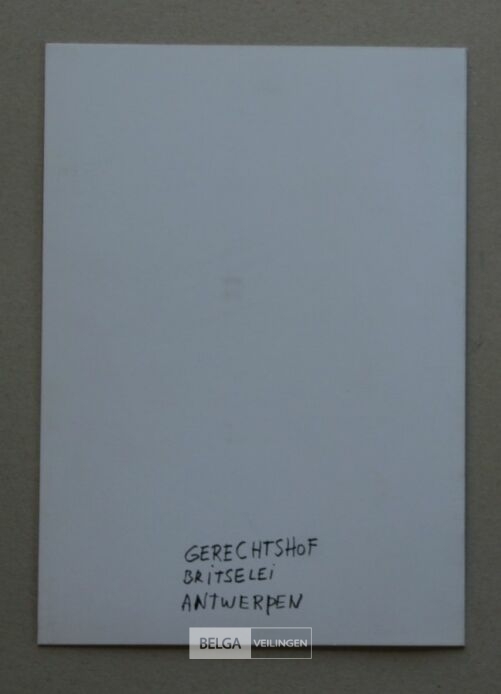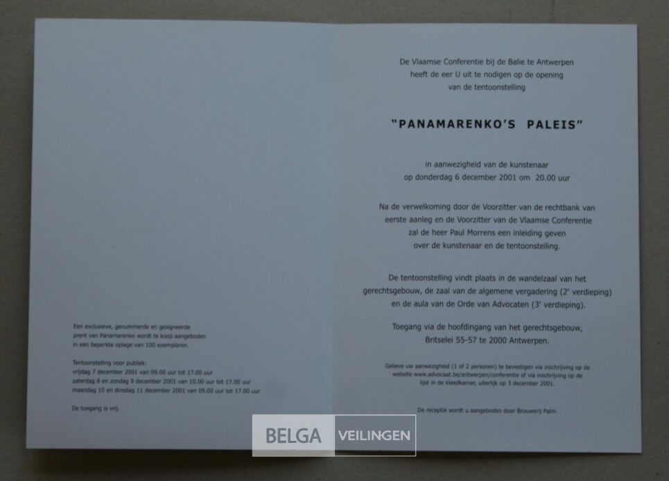 Zeldzame originele uitnodiging - 15x21 - tweeluik, goede staat met plooitje rechtsonder en klein vlekje recto - 2001 uitgegeven door de Vlaamse conferentie bij de balie Antwerpen - expo gerechtsgebouw Antwerpen - galerijprijs 50 euro