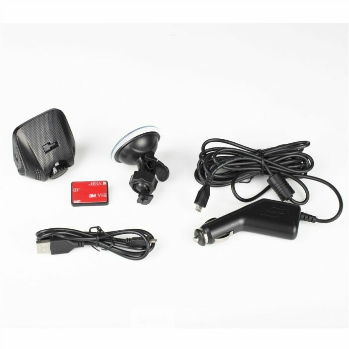 Dashcam,full HD,voedingskabel,zuignap,3M bevestigingstape,USB kabel,handleiding