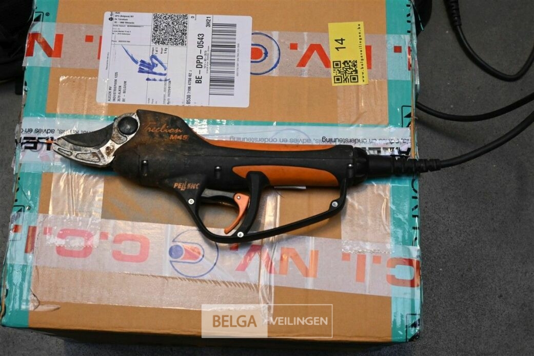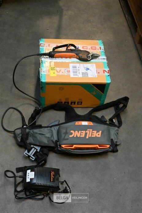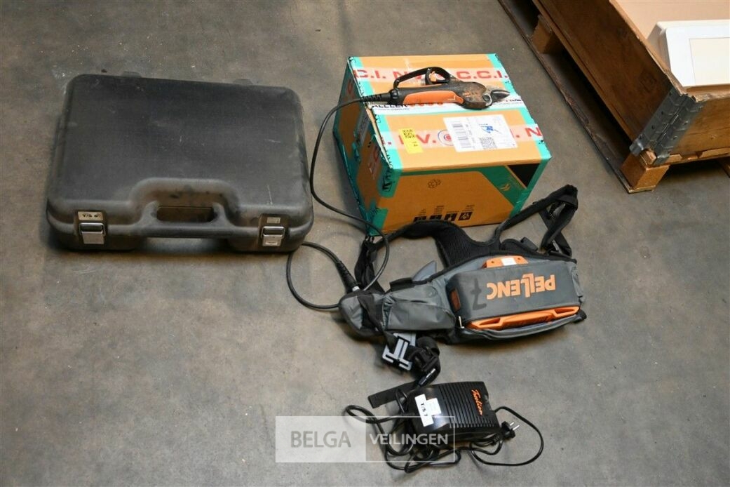Snoeischaar op batterij, merk Pellenc, met opbergkoffer. De werking van het artikel is onbekend en niet getest.