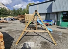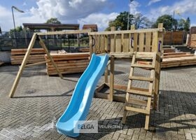 Speeltoren robusto. Vloerhoogte 125cm, Materiaal: palen & schommel 88x88mm, glijbaan kunststof kleur blauw, geleverd incl. 2 st handvast-4 schommelhaken-1 st grond ankers voor palen van schommel te verankeren, geleverd incl bevestigingsmateriaal en handleiding. Deze wordt geleverd in een bouw pakket.