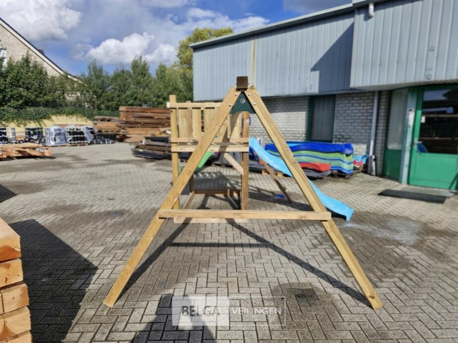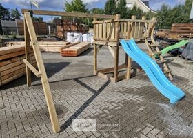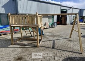 Speeltoren robusto. Vloerhoogte 125cm, Materiaal: palen & schommel 88x88mm, glijbaan kunststof kleur blauw, geleverd incl. 2 st handvast-4 schommelhaken-1 st grond ankers voor palen van schommel te verankeren, geleverd incl bevestigingsmateriaal en handleiding. Deze wordt geleverd in een bouw pakket.