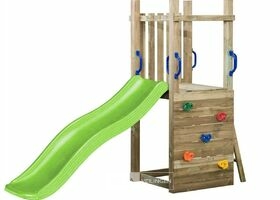 Speeltoren irma, Speeltoren met glijbaan Platformhoogte: 90 cm, Appelgroene glijbaan van 175 cm (licht verkleurd), Inclusief 6 handgrepen en 4 klimstenen