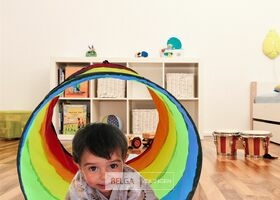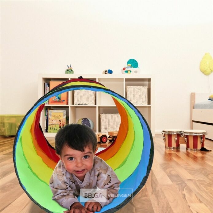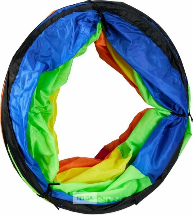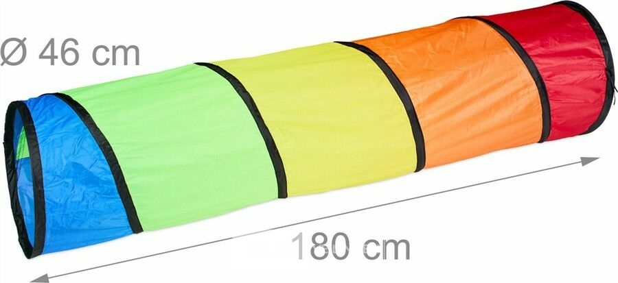 In vrolijke kleuren speeltunnel kinderen - 180 x 46 cm - opvouwbaar - polyester-retour van relaxdays