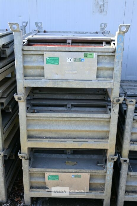 3x Stapelbare en Vouwbare Materiaal Bak uit gegalvaniseerd Metaal: afm 115 x 80 x 120 cm