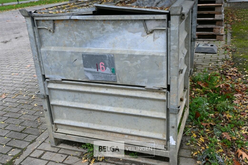 Stapelbare en vouwbare materiaalbak uit gegalvaniseerd metaal 115 cm x 80 cm x 120 cm.