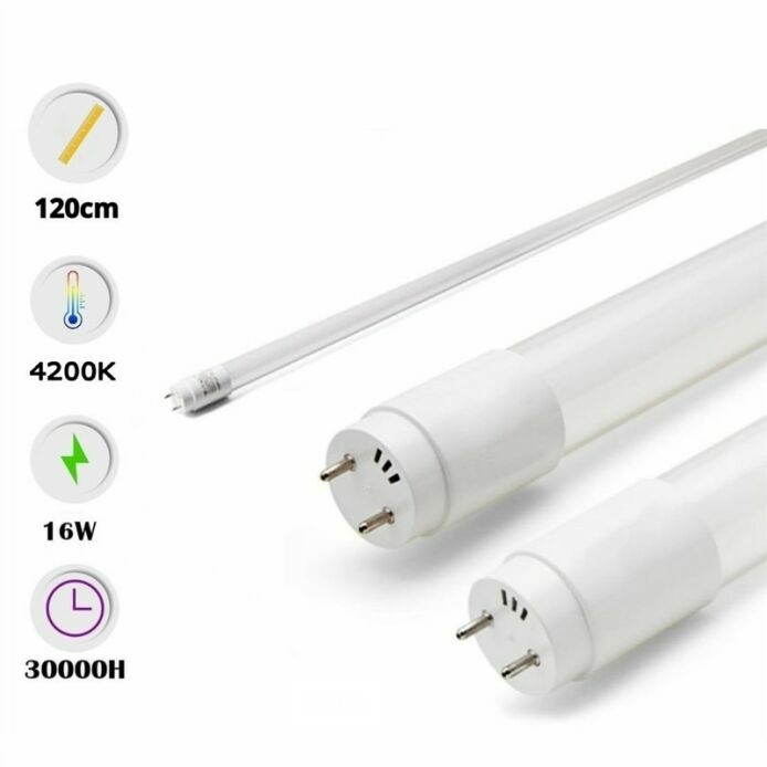 30 x LED-buizen 16W – 120cm – 4200K – T8 – LED-buis type T8 – Vermogen: 16W – Kleurtemperatuur: 4 200K (neutraal wit) – Krachtige, gelijkmatige en comfortabele verlichting – Lengte: 120 cm – Afmetingen: Ø 29 x 1214 mm – Beamhoek: 300° – Compatibel met standaard fluorescentielampen voor eenvoudige vervanging – Spanning: 165-265V (50/60Hz) – Levensduur: 25.000 uur – Geschikt voor gebruik binnenshuis – Eenvoudige, voordelige en betrouwbare oplossing.