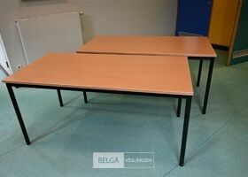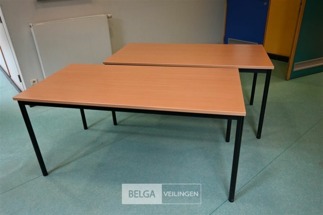Tafel, berkenlaminaat en zwart metalen onderstel, afm 160 x 80 x 75,5 cm