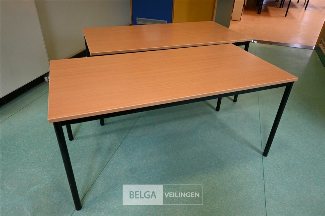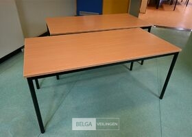 Tafel, berkenlaminaat en zwart metalen onderstel, afm 160 x 80 x 75,5 cm