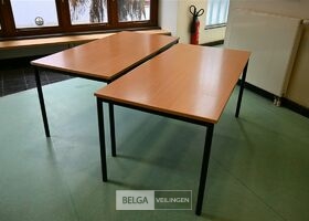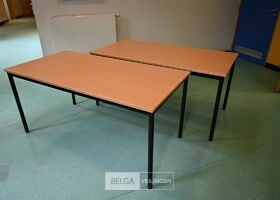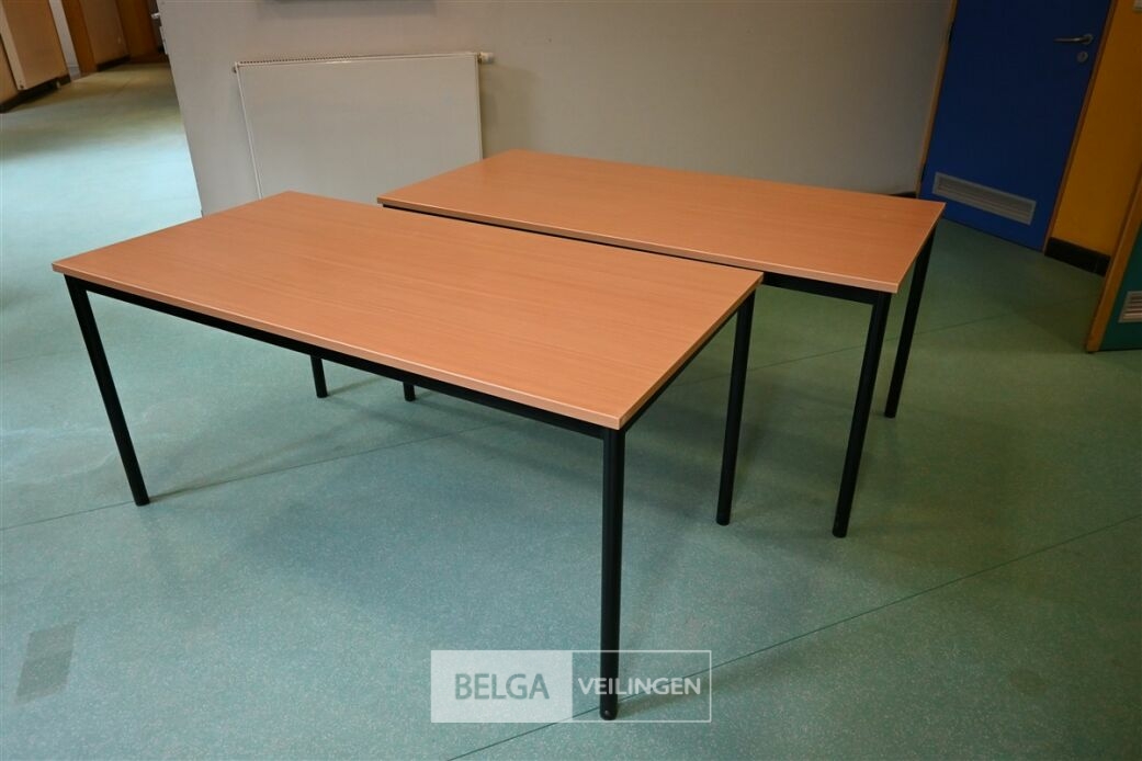 Tafel, berkenlaminaat en zwart metalen onderstel, afm 160 x 80 x 75,5 cm