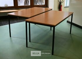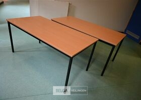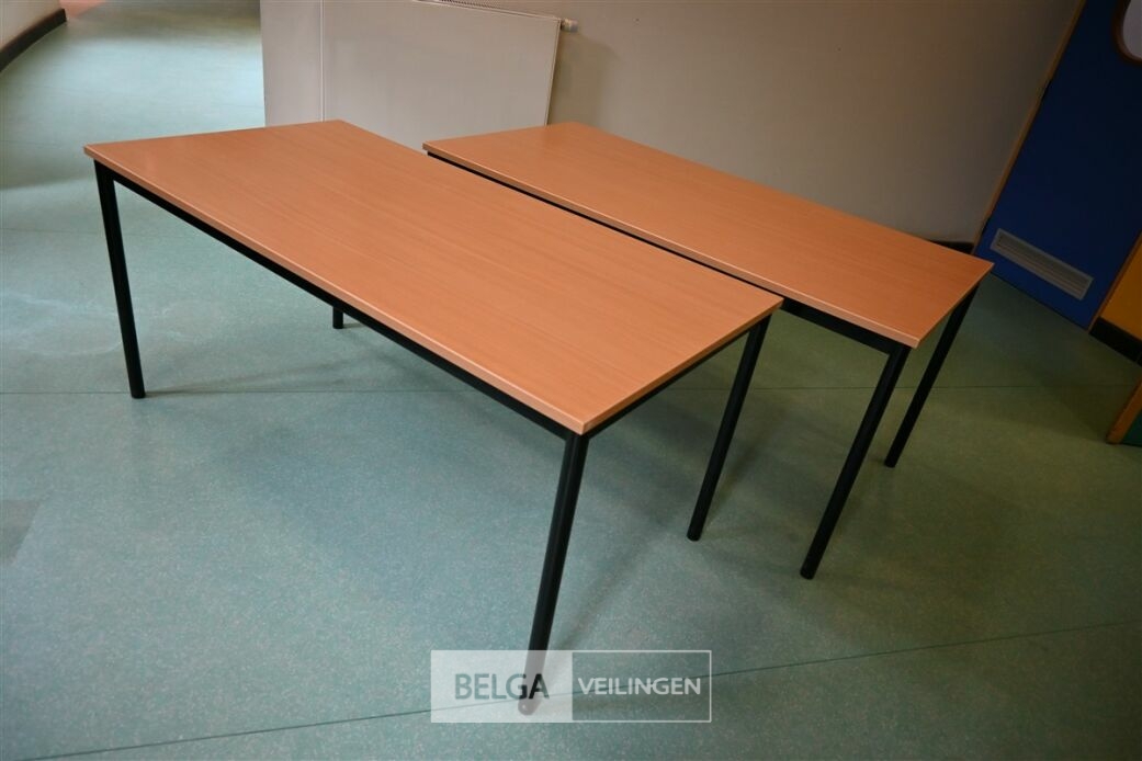 Tafel, berkenlaminaat en zwart metalen onderstel, afm 160 x 80 x 75,5 cm