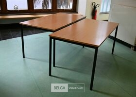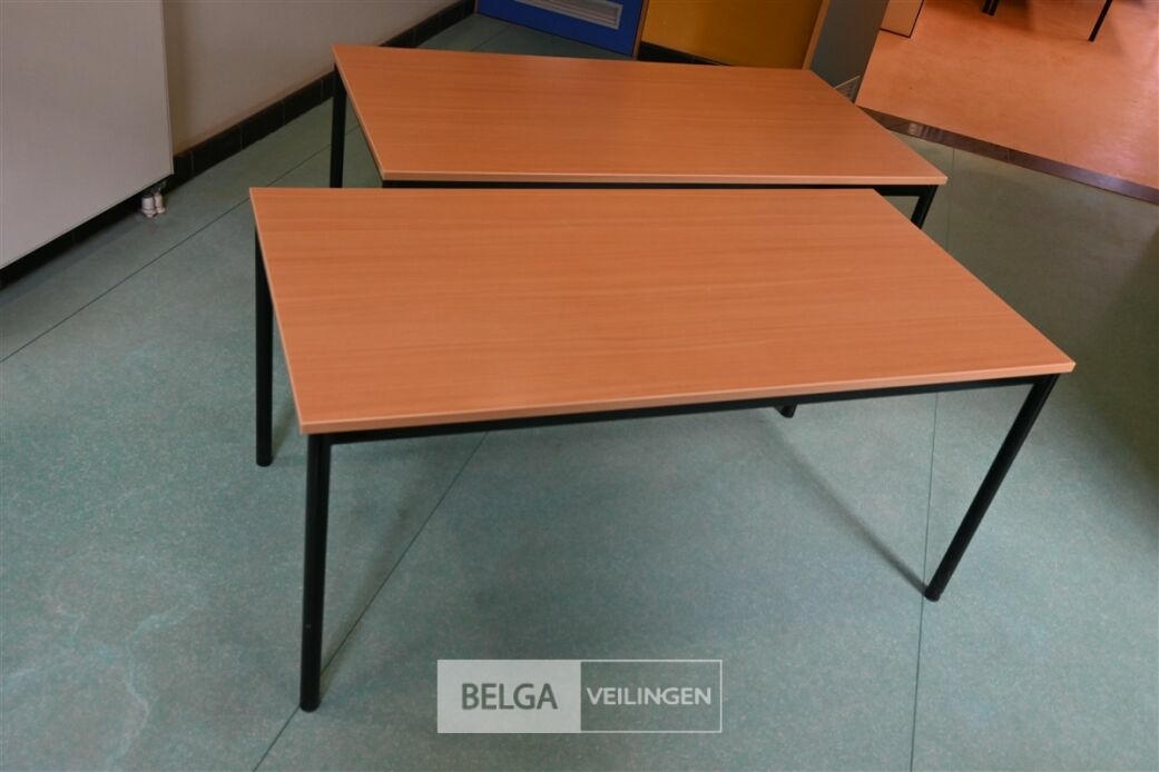 Tafel, berkenlaminaat en zwart metalen onderstel, afm 160 x 80 x 75,5 cm