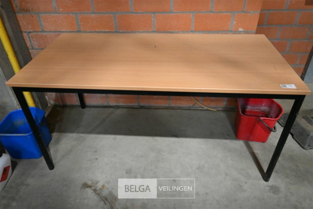 Tafel, berkenlaminaat en zwart metalen onderstel, afm 160 x 80 x 75,5 cm