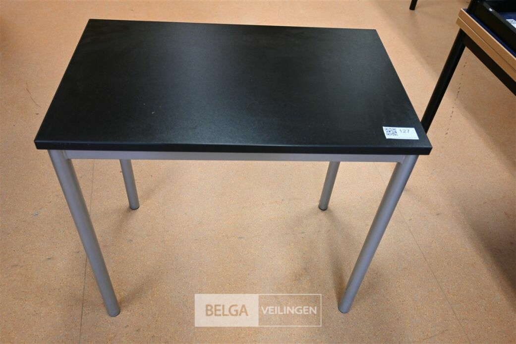 Tafel, laminaat zwart en lichtgrijs metalen onderstel, afm 80 x 50 x 75,5 cm