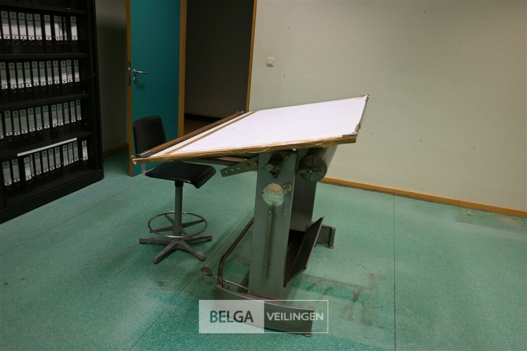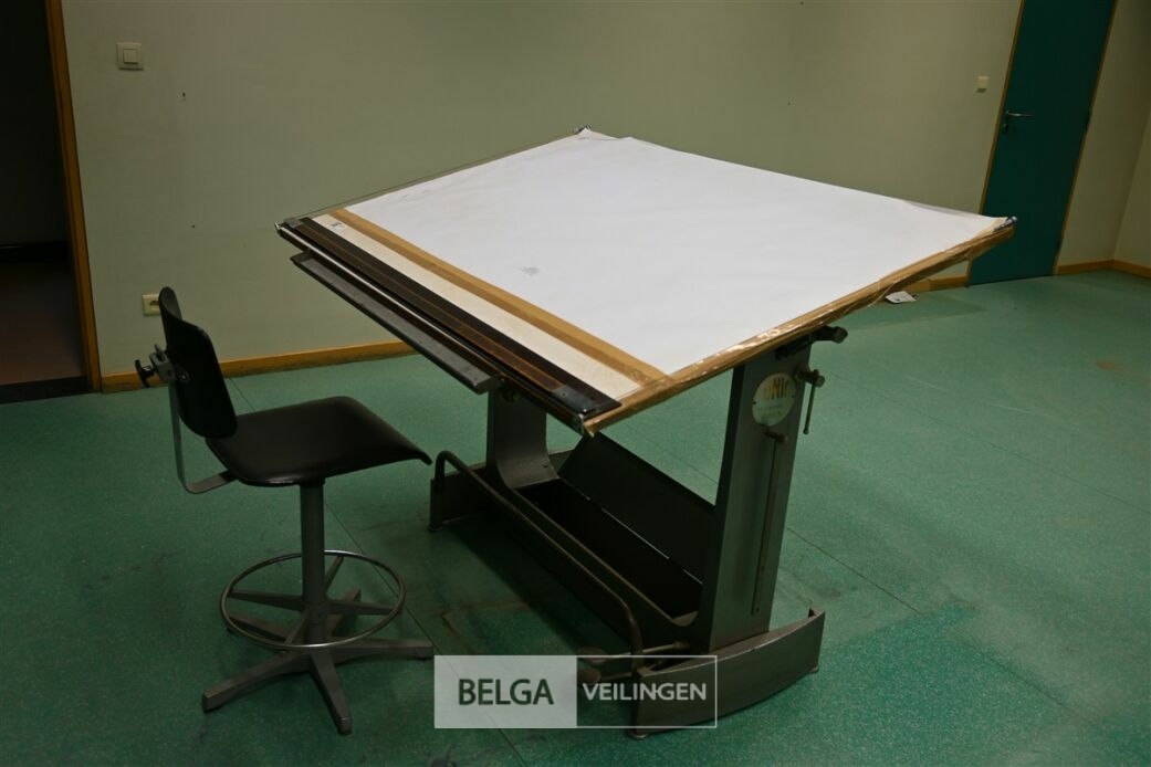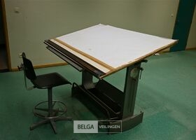 Tekentafel UNIC metaal met kontergewicht, Paralellat en stoel, 150 x 100 x 70 cm, mechanisch in orde