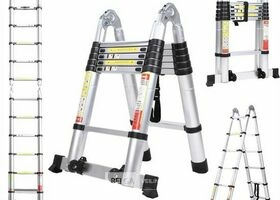 Multifunctionele Aluminium Telescopische Uitschuifladder/vouwladder - 5.6meter-21kg- ingeschoven 105x54cm- dus handig mee te nemen in camper-caravan of auto