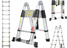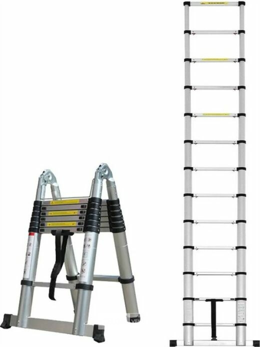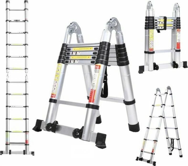 Multifunctionele Aluminium Telescopische Uitschuifladder/vouwladder - 5.6meter-21kg- ingeschoven 105x54cm- dus handig mee te nemen in camper-caravan of auto