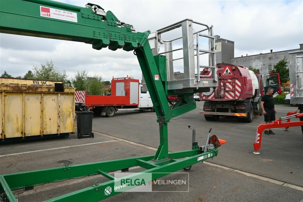 TEUPEN LEO 23 H knikarmhoogwerker, bouwjaar 1995, platform voor 2 personen (maximum 175kg), werkhoogte 22,8 meter en reikwijdte 12,5 meter, op benzine + dubbelassige aanhangwagen TIMA, chassisnummer VBTGER99003002447, bouwjaar 1999, papieren (kentekenbewijs, keuringsbewijs, identificatieverslag en proces verbaal van goedkeuring) aanwezig, keuringsbewijs is nog geldig tot 8/11/2025