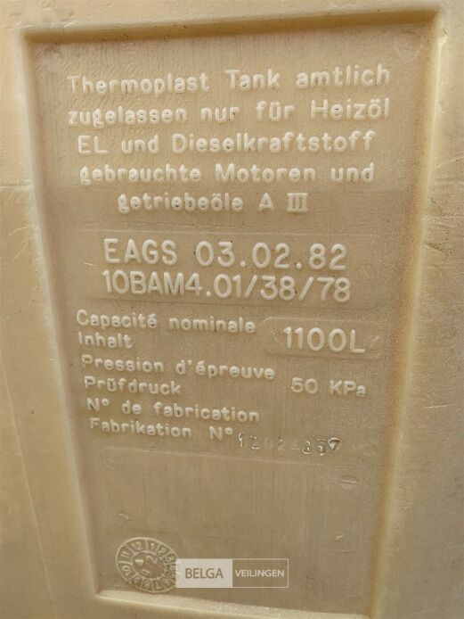 Thermoplast tank van 1100 ltr. Merk LENTZ. 140 x 100 cm