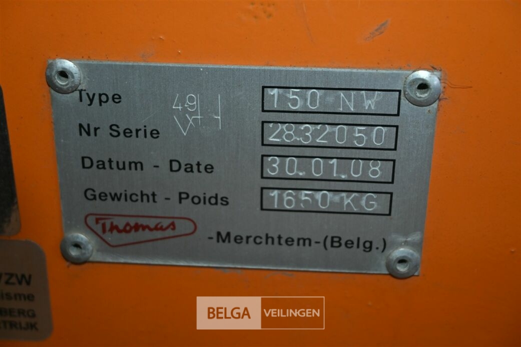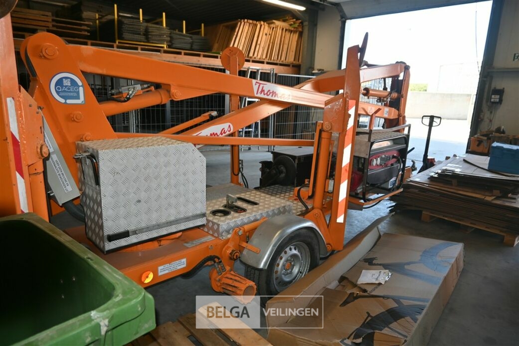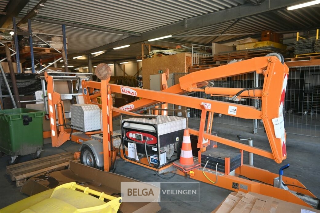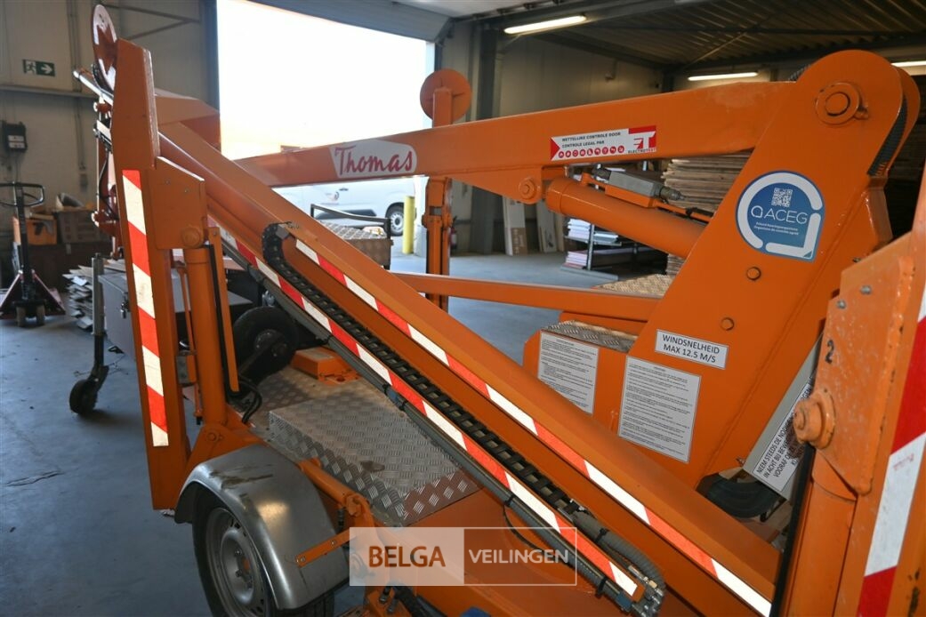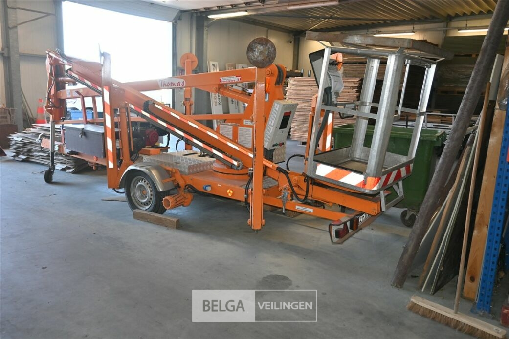 THOMAS 150NW getrokken hoogwerker, bouwjaar 2008, gewicht 1650kg, werkhoogte 15 meter, zijdelijngs bereik 7,5 meter, maximum capaciteit korf 250kg