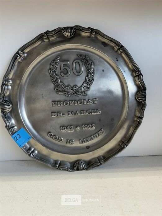 Tinnen dierbord – (afm. Ø 36 cm) – 82% TIN